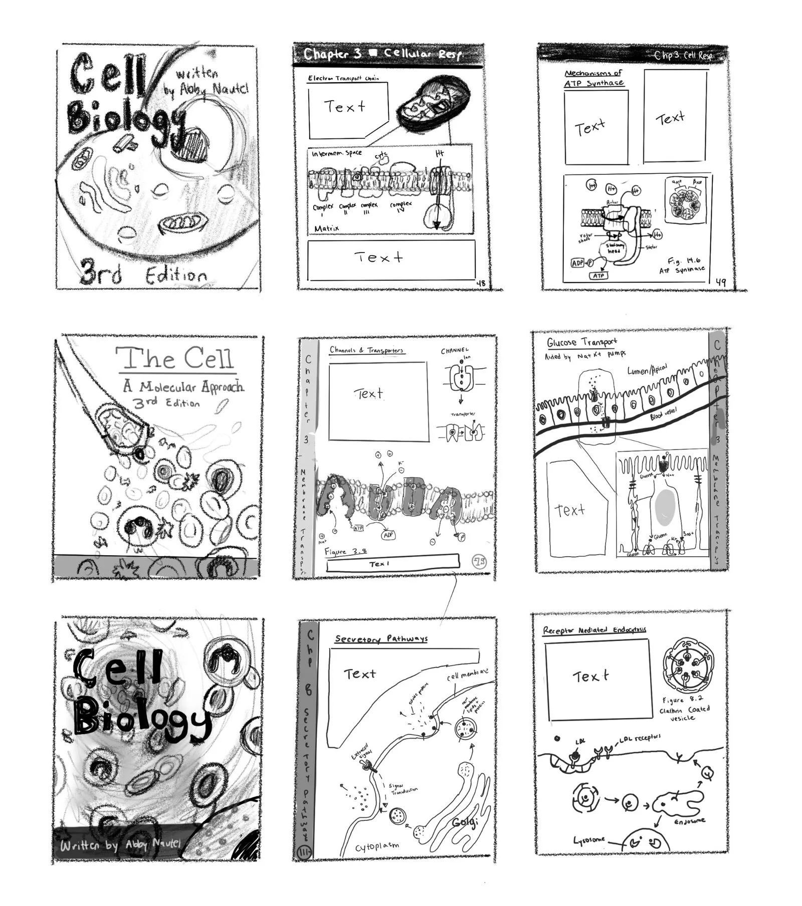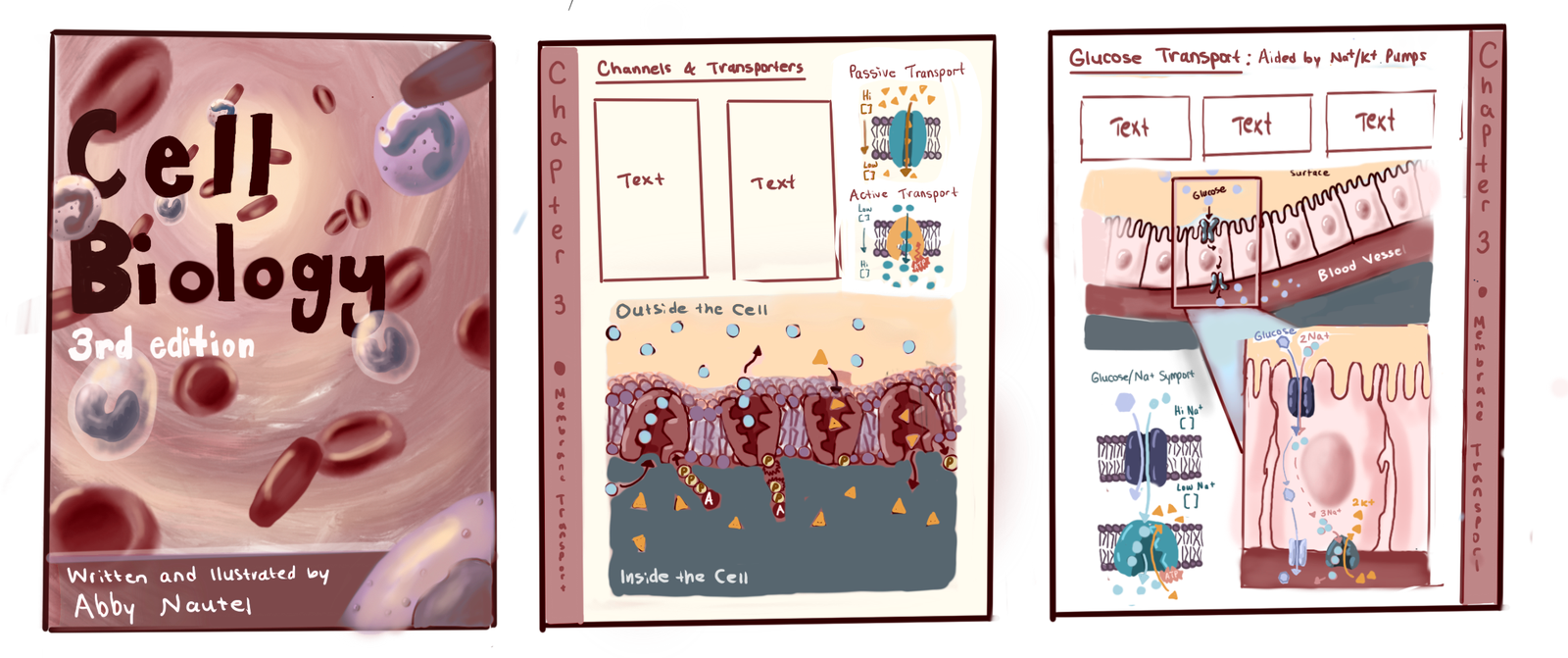 For this project I created a textbook cover design along with a sample one page textbook spread. One of my favorite classes I’ve taken in college was a cellular biology course so inspired by that I choose my textbook to be a cell biology textbook.